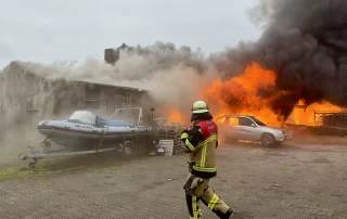 Großbrand in Frillendorf: Halle eines Holzbetriebs brennt vollständig aus